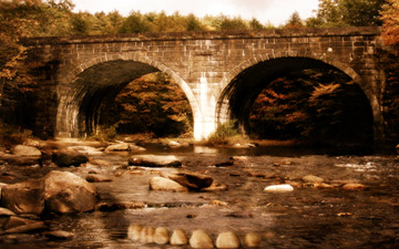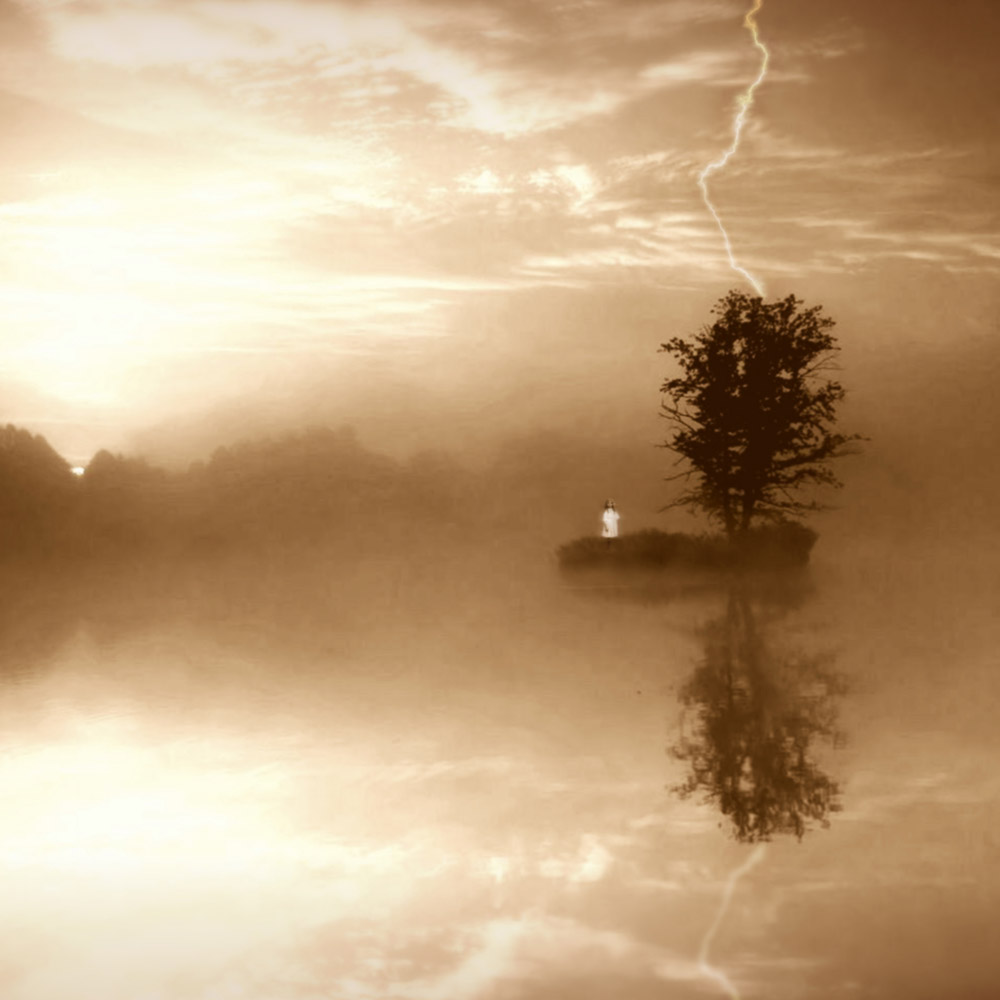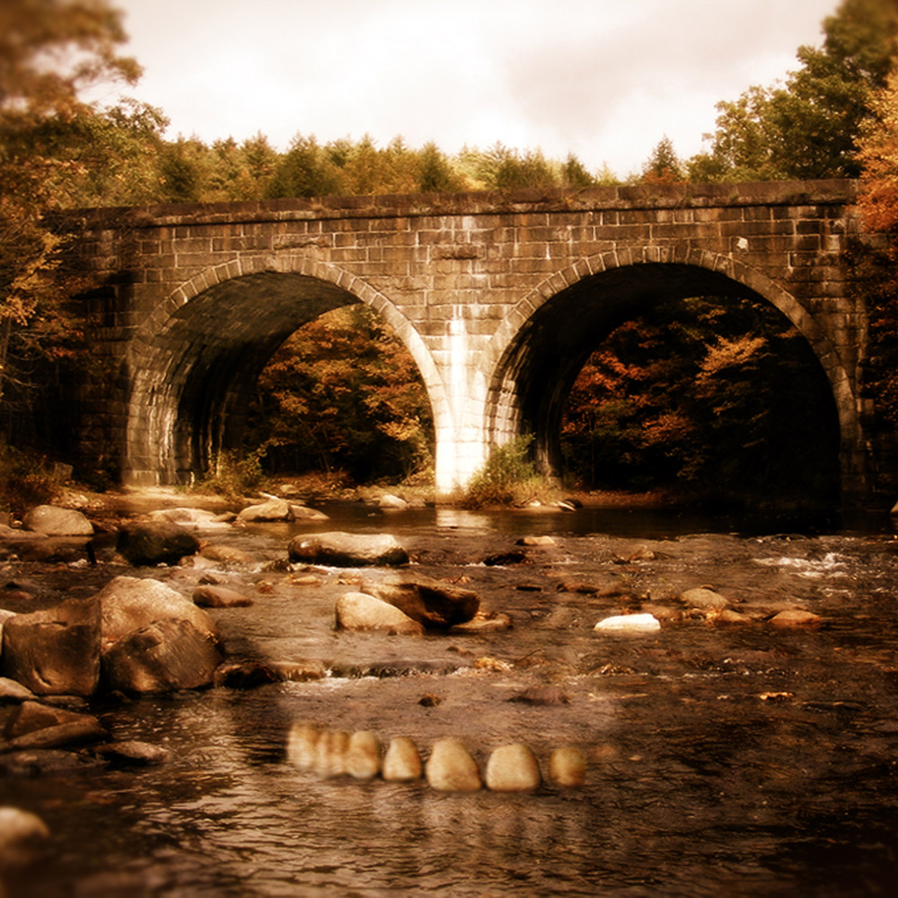 Bathed in muted gold, the bridge links two worlds—life and death. Its reflection blurs the divide, while beneath the calm water, a skull rests, a subtle trace of impermanence.