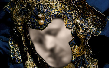 At first glance, it’s a pensive Venetian mask. But look closer, and you’ll see a couple kissing hidden within its features.
