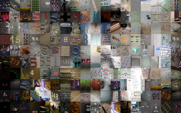 Photomosaic portrait. Can you spot who’s hidden within this random arrangement of number photos?